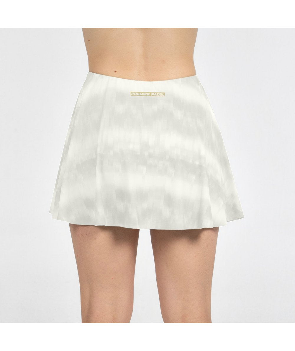 Jupe technique imprimée de la ligne Premier Padel. Donnez le meilleur de vous-même avec cette jupe en maille polyester-élasthanne, qui offre élasticité, légèreté et liberté de mouvement à chaque frappe. Elle intègre la technologie Drynamic, développée avec des microfilaments qui réduisent l'humidité et favorisent une respirabilité optimale, vous gardant au sec tout au long du match. Son imprimé évasé apporte dynamisme et style, tandis que la doublure intérieure en mesh assure maintien et confort. Ornée des graphismes officiels Premier Padel, elle allie performance, fraîcheur et personnalité pour vous faire briller sur le court.